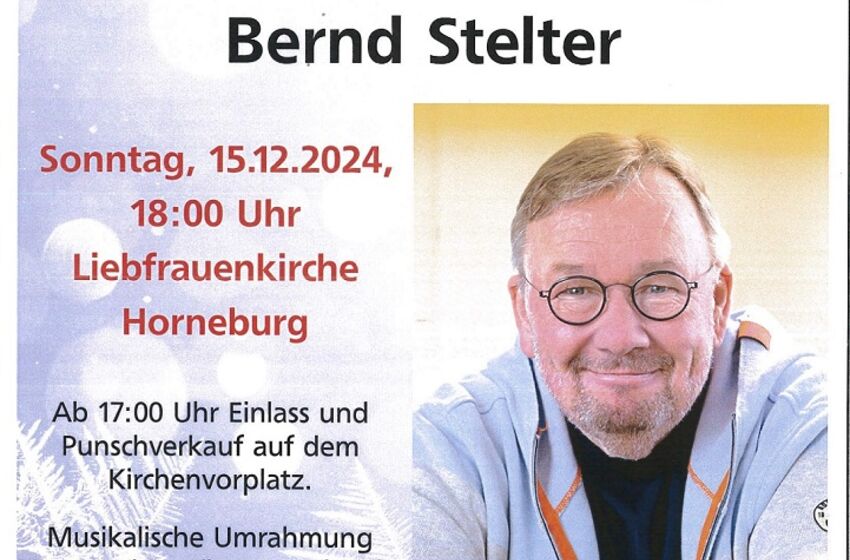 14. Horneburger Weihnachtslesung mit Bernd Stelter und musikalischer Untermalung durch Kantor Klaus Jürgen Buchroth 15.12.2024 um 18 Uhr in der Liebfrauenkirche Ab 17 Uhr Einlass & ...