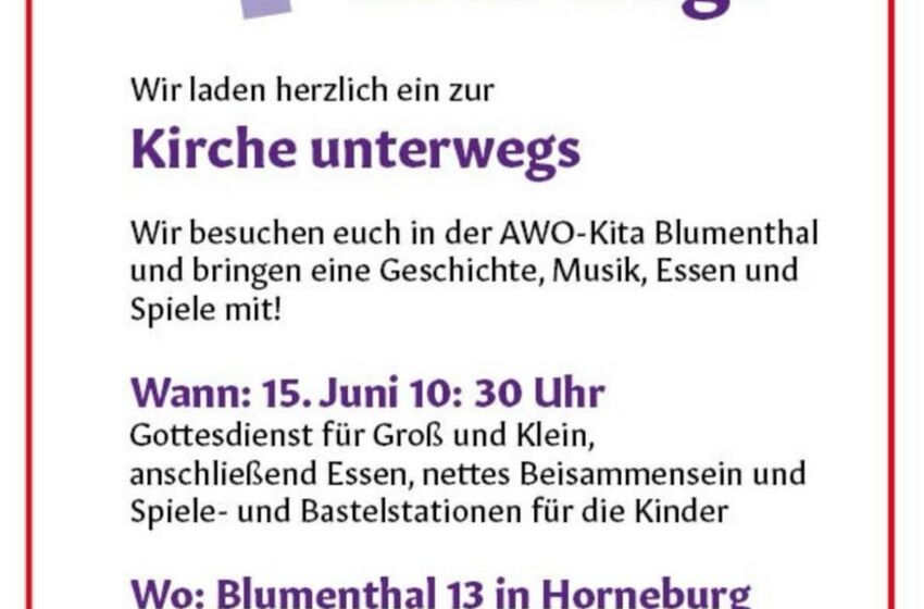 In der AWO-Kita Blumenthal gibt es am Sonntag um 10:30 einen besonderen Gottesdienst. Es gibt eine Geschichte, Musik, Essen & Spiele - mit Pastorin Kircher & dem KimiKi-Team. AWO-Kita ...