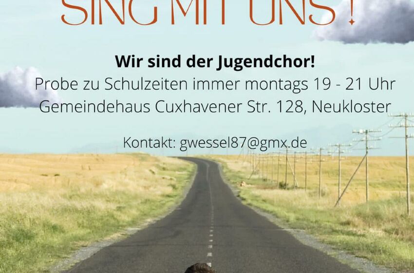 Ein kleiner Hinweis - der Jugendchor Neukloster sucht Jugendliche zwischen 14 und 27 Jahren - Montags 19 bis 21 Uhr im Gemeindehaus Cuxhavener Straße 128 in Neukloster