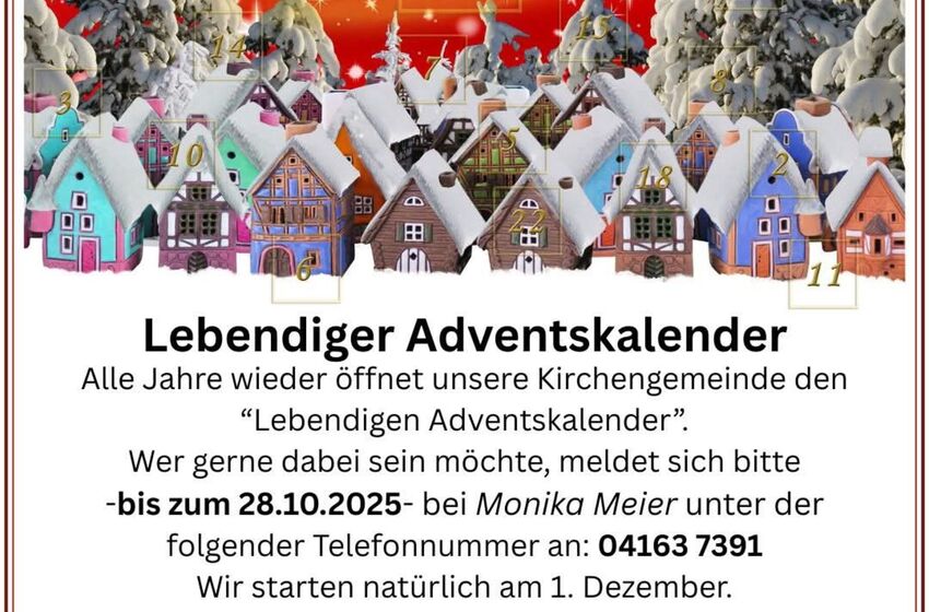 Wer gerne dabei sein möchte, meldet sich bitte – bis zum 28.10.2025 – bei Monika Meier unter der folgenden Telefonnummer an: 04163 7391 Wir starten natürlich am 1. Dezember. Beginn ist um 18.00 ...