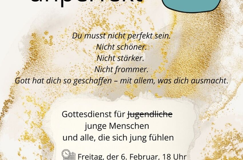 Unperfekt? Willkommen. 💛 Du musst nicht schöner. Nicht stärker. Nicht frommer. Komm wie du bist. Wirklich. 📍 Feldsteinkirche Bliedersdorf 🗓️ Fr, 6. Februar | 18 Uhr 👥 Für Jugendliche, junge ...