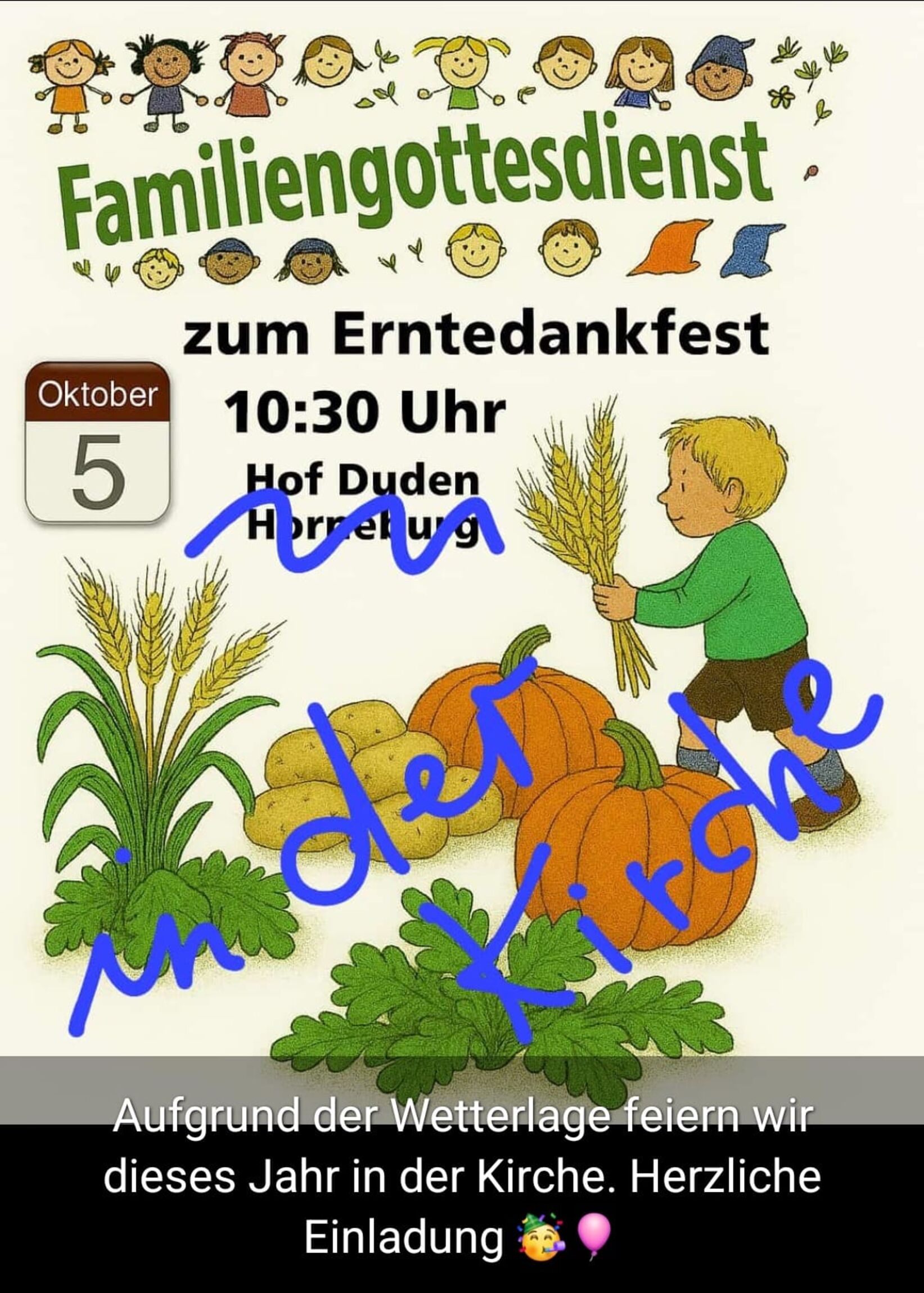 Achtung - auch wir können das Wetter nicht beeinflussen, daher findet der Gottesdienst um 10:30 nicht auf dem Hof Duden sondern in der Liebfrauenkirche statt.