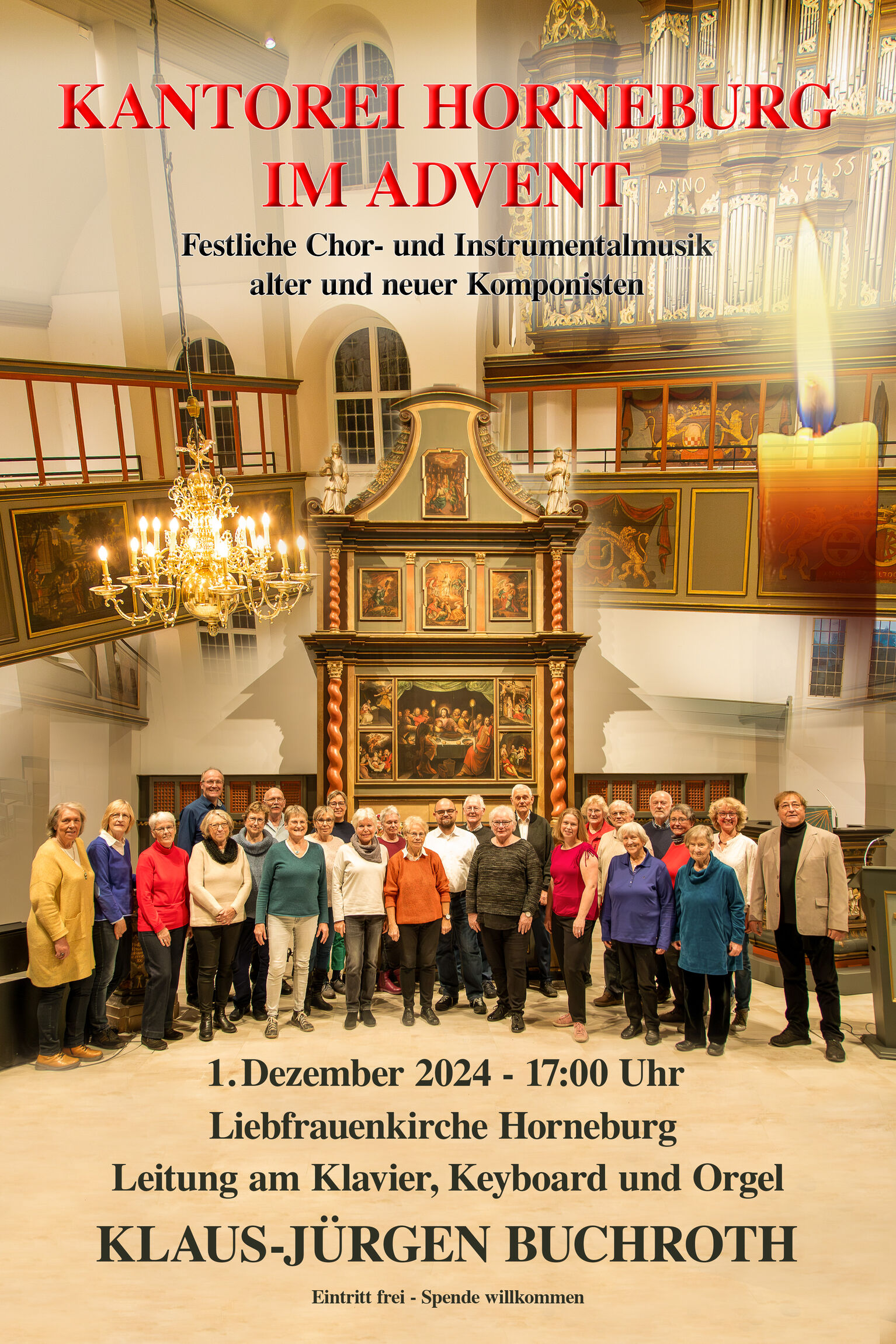 Unter der Leitung des Chorleiters Klaus-Jürgen Buchroth, der das Konzert an Klavier, Keyboard und Orgel begleitet, wird die Horneburger Kantorei die Zuhörer in vorweihnachtliche Stimmung versetzen.