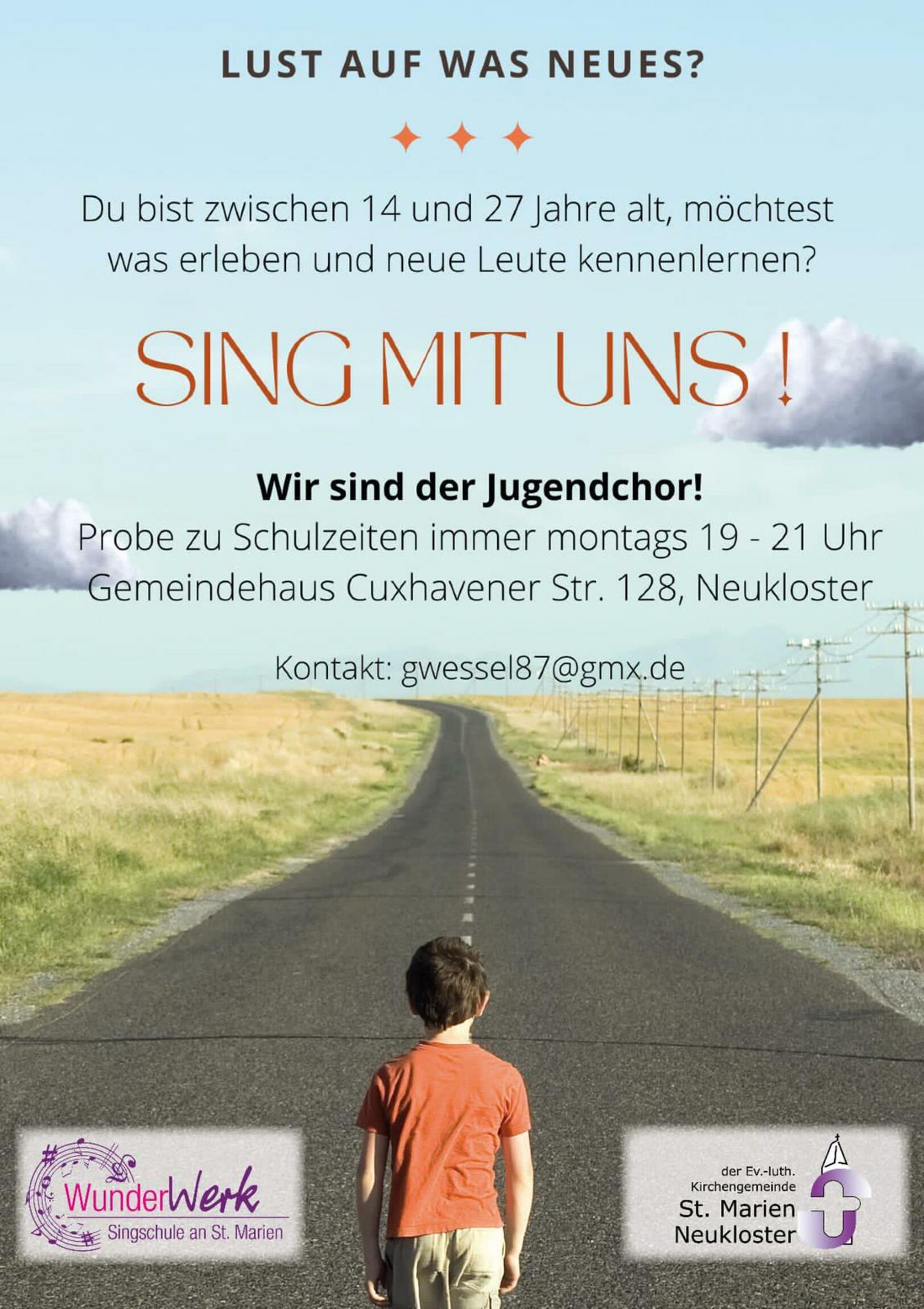 Ein kleiner Hinweis - der Jugendchor Neukloster sucht Jugendliche zwischen 14 und 27 Jahren - Montags 19 bis 21 Uhr im Gemeindehaus Cuxhavener Straße 128 in Neukloster