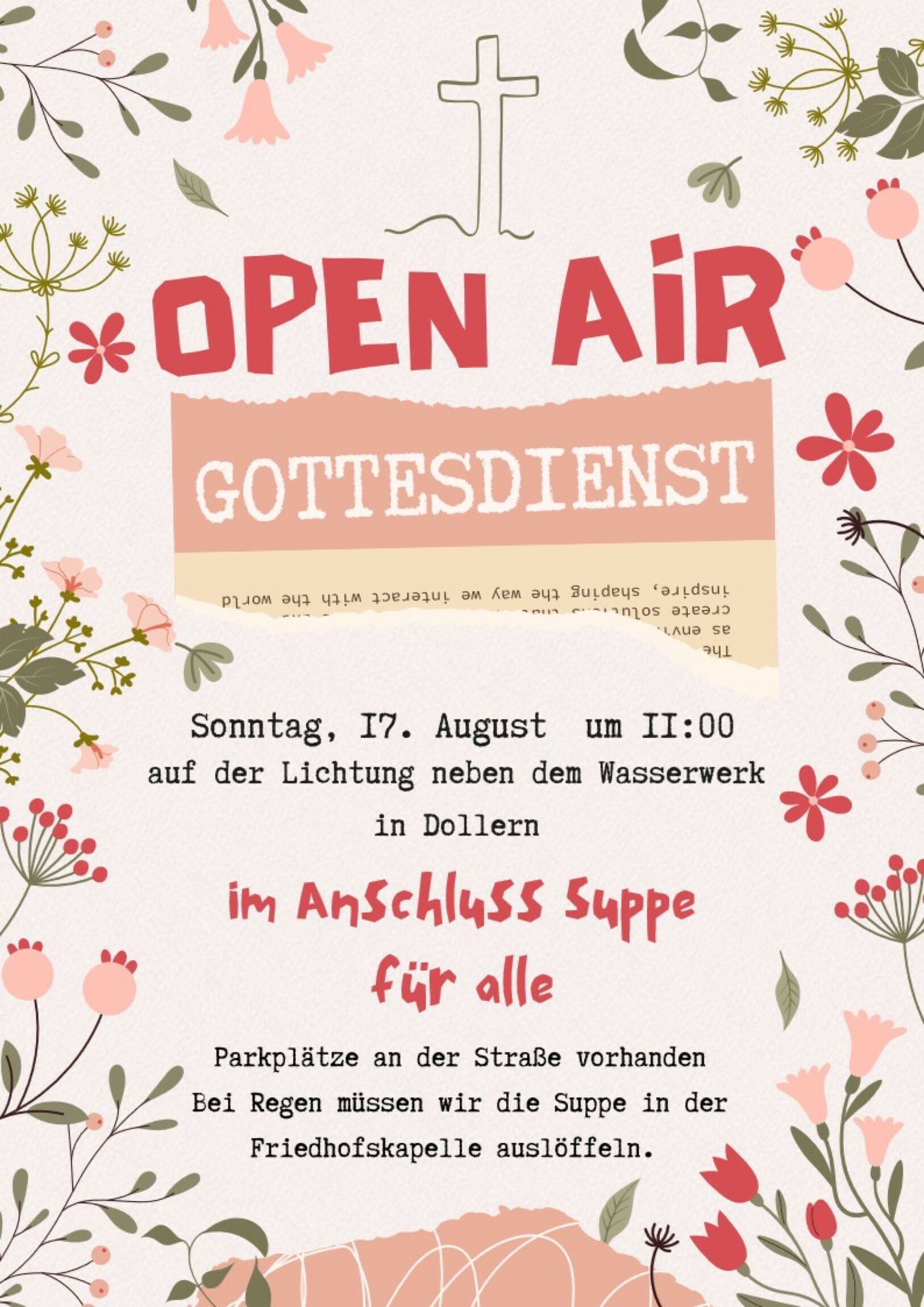 Am 17. August 2025 findet um 11 Uhr unser Open Air Gottesdienst auf der Lichtung neben dem Wasserwerk statt.