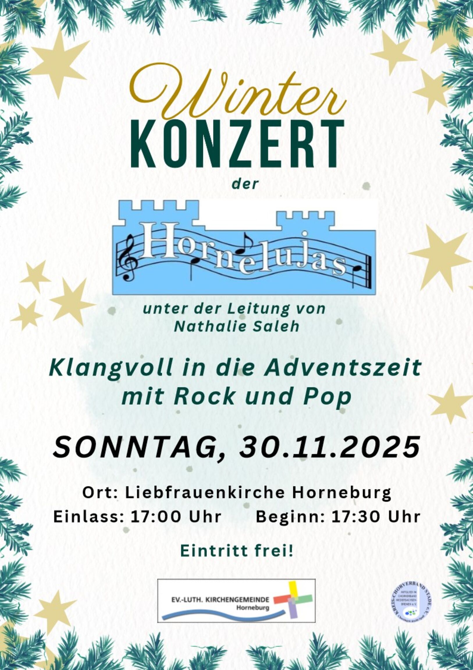 Eine herzliche Einladung zum Winterkonzert der Hornelujas unter der Leitung von Natalie Saleh am 30. November 2025 um 17:30 Uhr in der Liebfrauenkirche.