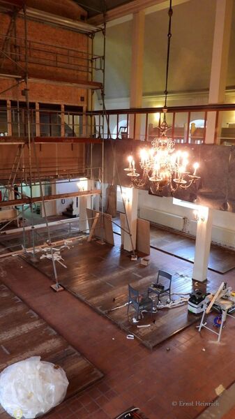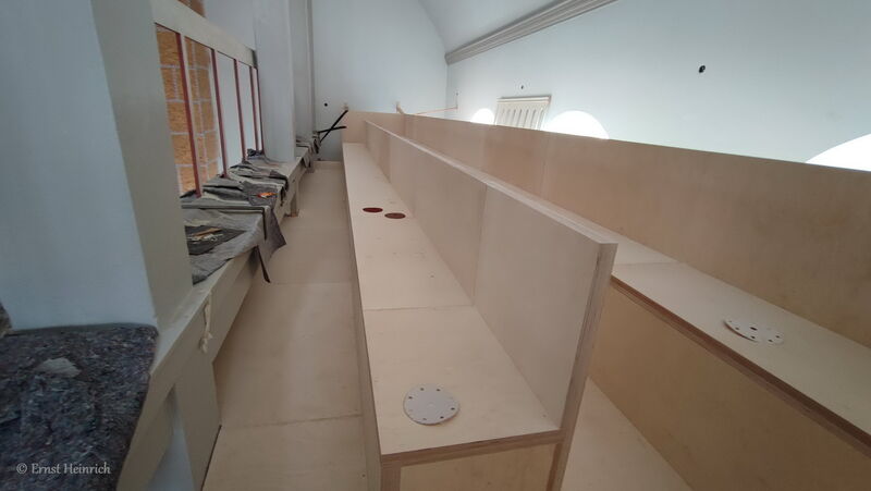Der Eingangsbereich wird mit einem neuen Windfang nach draußen verlagert. Während wir bei den anderen Bauabschnitten nur einen kleinen finanziellen Beitrag dazu leisten müssen, geht die Innenrenovierung komplett zu Lasten der eigenen Kirchengemeinde.